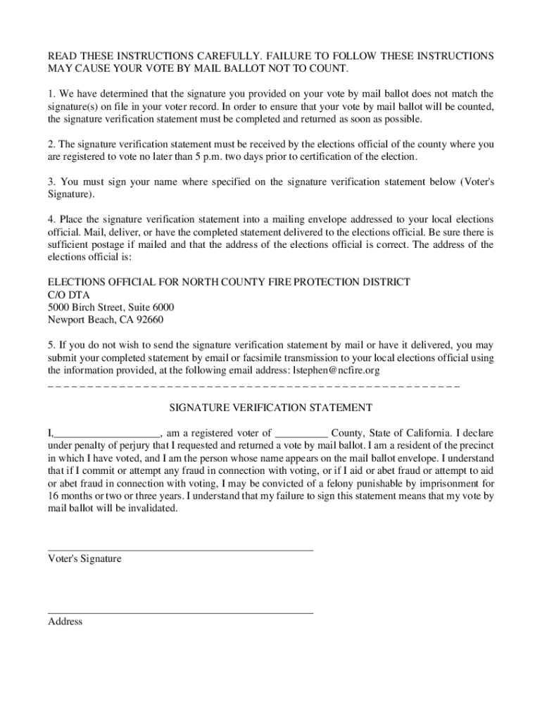 READ THESE INSTRUCTIONS CAREFULLY. FAILURE TO FOLLOW THESE INSTRUCTIONS MAY CAUSE YOUR VOTE BY MAIL BALLOT NOT TO COUNT. 1. We have determined that the signature you provided on your vote by mail