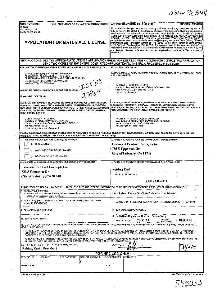 How to fill out nrc form 313application for?