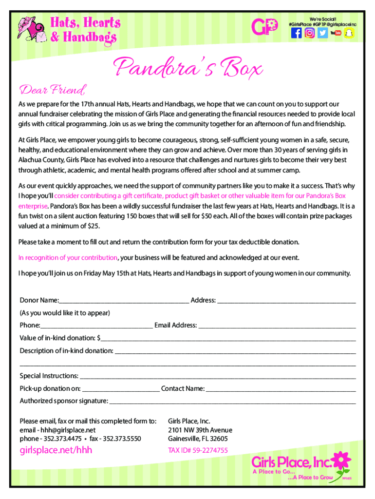 #Birthplace #GP1P @girlsplaceincDear Friend, Pandora's Boxes we prepare for the 17th annual Hats, Hearts and Purses, we hope that we can count on you to support our