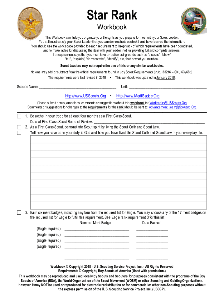 Star Rank Workbook This Workbook can help you organize your thoughts as you prepare to meet with your Scout Leader. You still must satisfy your Scout Leader that you can demonstrate each skill and
