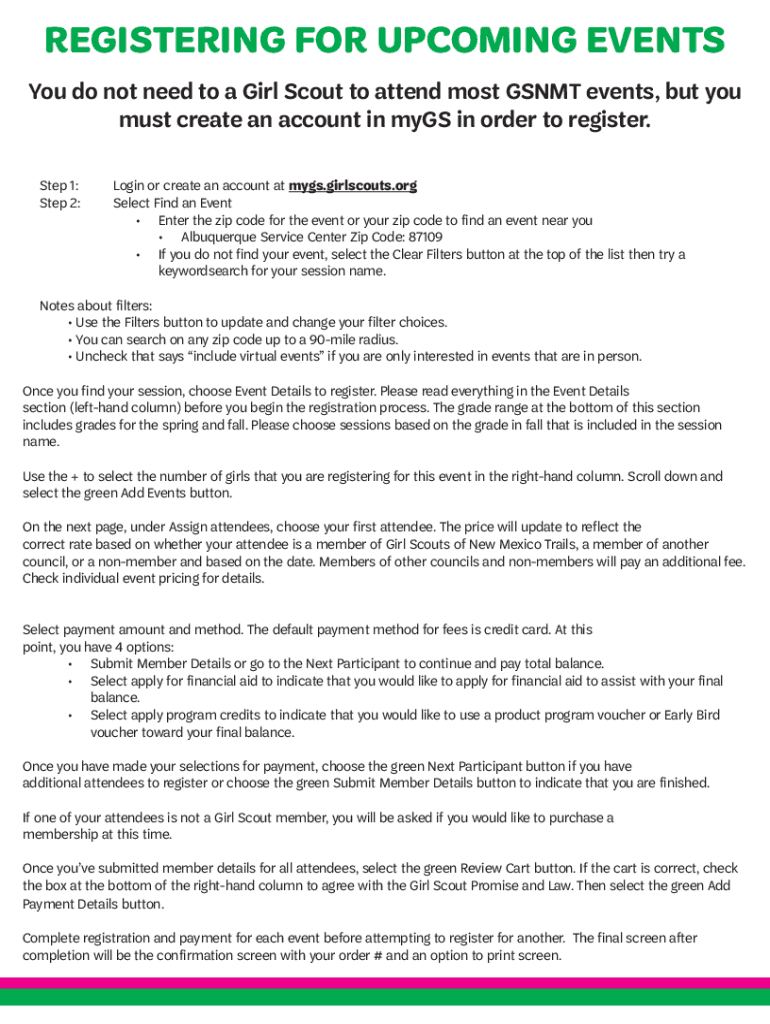 Get the free How to Register for Events - Girl Scouts of Western Washington
