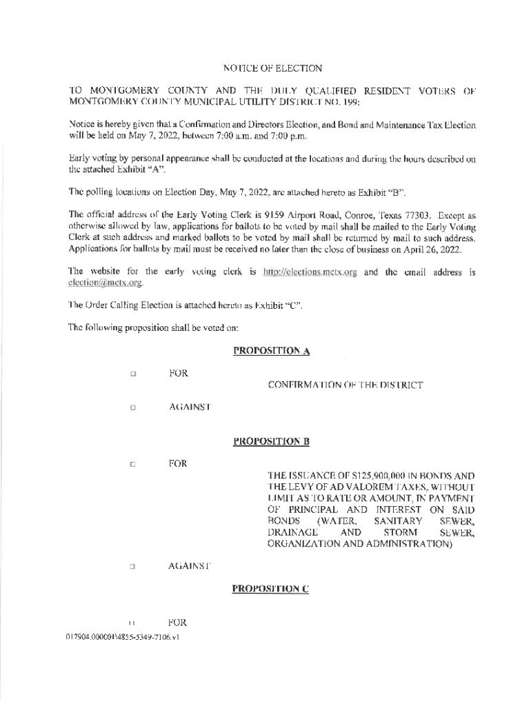Get the free notice of joint election - City of Montgomery Texas