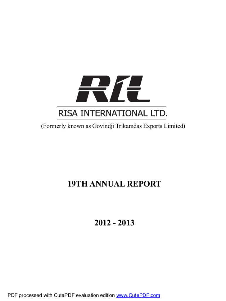 (Formerly known as Govini Triads Exports Limited)19TH ANNUAL REPORT2012 2013PDF processed with Cute PDF evaluation edition www.CutePDF.comCOMPANY INFORMATION BOARD OF DIRECTORS Mr. Abhinandan Jain