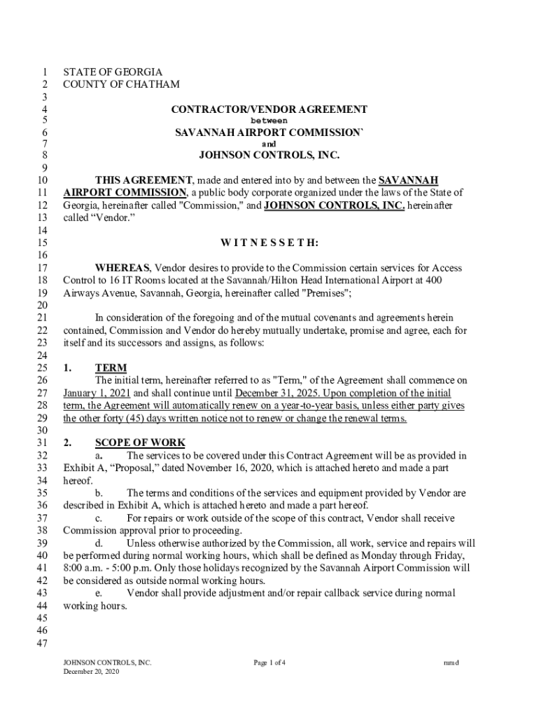 Get the free state of georgia 1 county of chatham 2 3 contractor/vendor ...