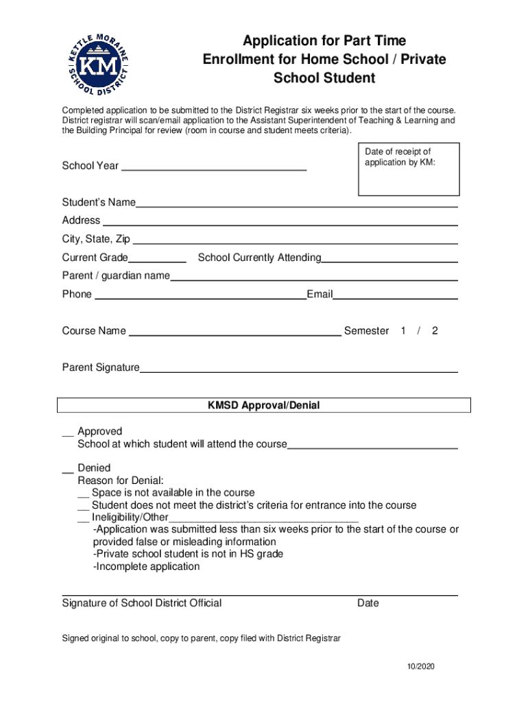 Completed application to be submitted to the District Registrar six weeks prior to the start of the course.
