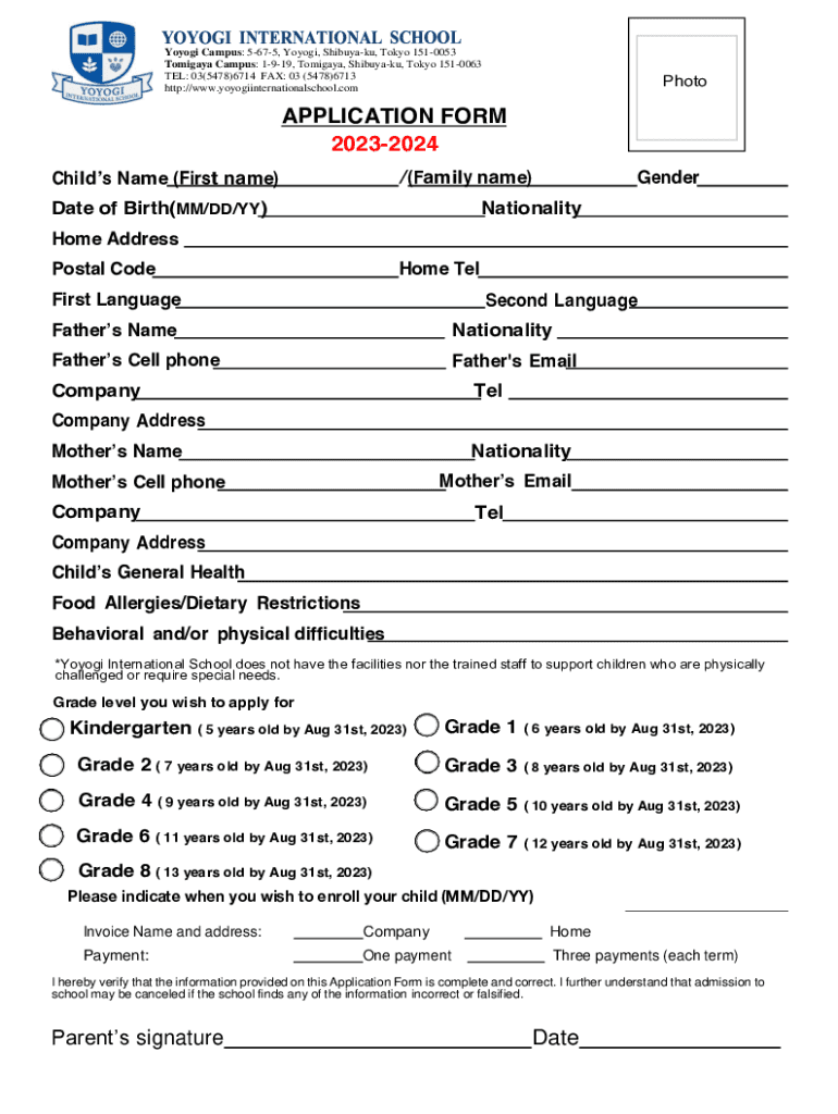 Get the free 2023-2024 Parent's signature Date APPLICATION FORM