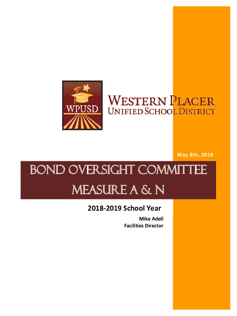 May 8th, 2019Bond Oversight Committee Measure A & N 20182019 School Year Mike Dell Facilities Director. O.C. Packet Measure A and Measure N1. 2. 3. 4. 5. 6. 7. 8. 9. Agenda Minutes from Feb 2019 Meeting