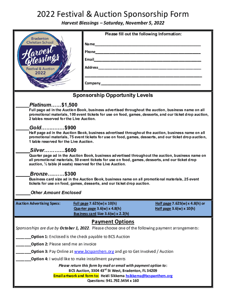 Fill out your sponsorship form auction 2022 online with pdfFiller!