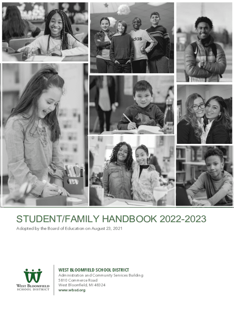 STUDENT/FAMILY HANDBOOK 20222023 Adopted by the Board of Education on August 23, 2021WEST BLOOMFIELD SCHOOL DISTRICTAdministration and Community Services Building 5810 Commerce Road West Bloomfield,