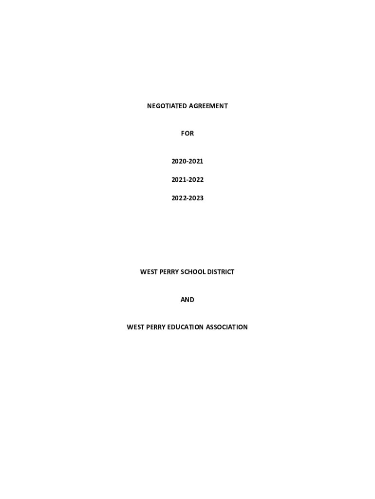 NEGOTIATED AGREEMENT FOR 20202021 20212022 20222023WEST PERRY SCHOOL DISTRICT AND WEST PERRY EDUCATION ASSOCIATIONCOLLECTIVE BARGAINING AGREEMENT Table of Contents COLLECTIVE BARGAINING AGREEMENT