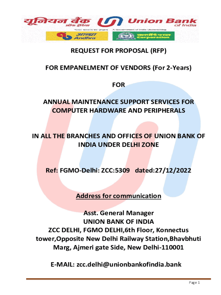 Get the free Request for Proposal - Empanelment of vendors for supply of ...