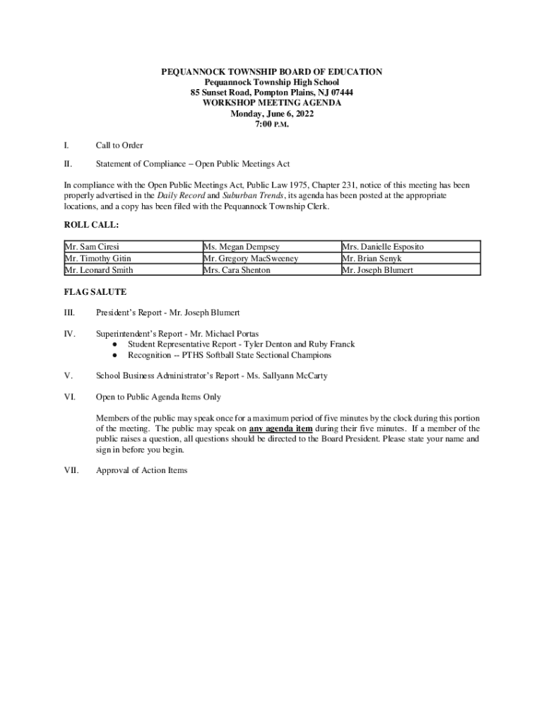 Get the free pequannock township board of education