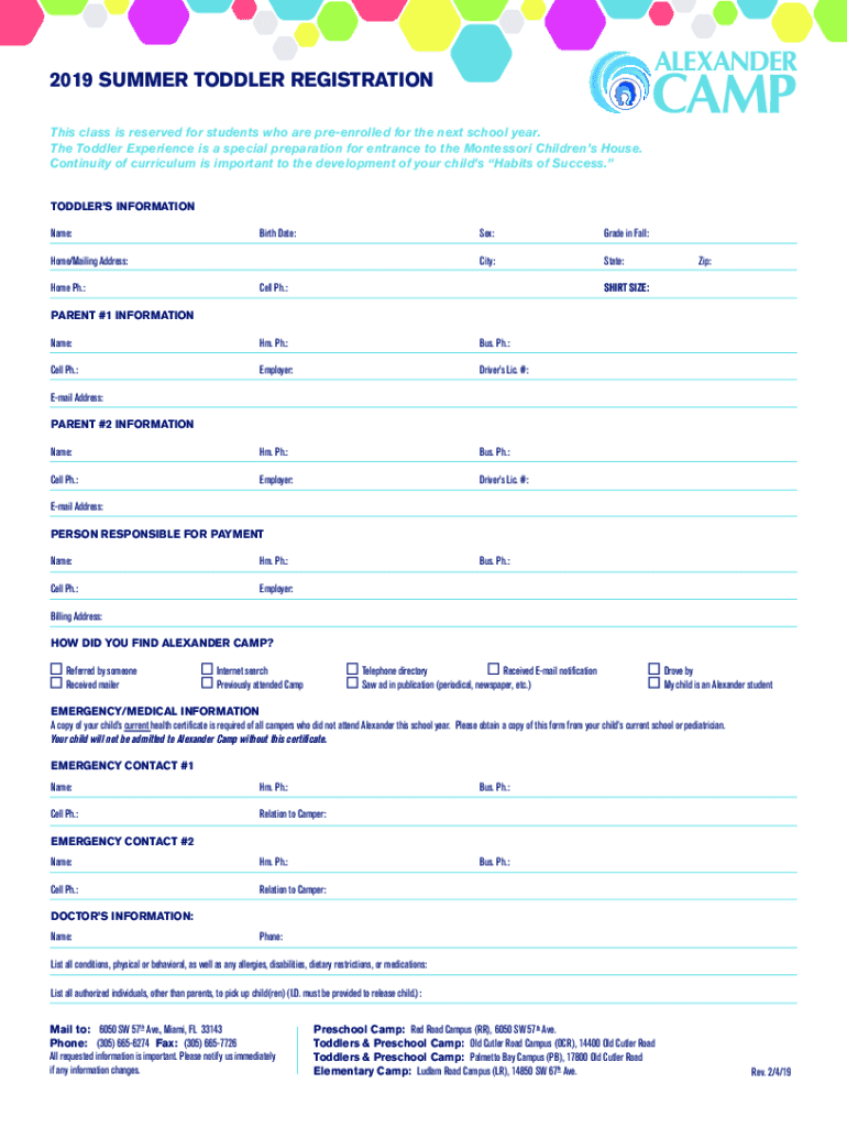 2019 SUMMER TODDLER REGISTRATION This class is reserved for students who are preened rolled for the next school year. The Toddler Experience is a special preparation for entrance to the Montessori
