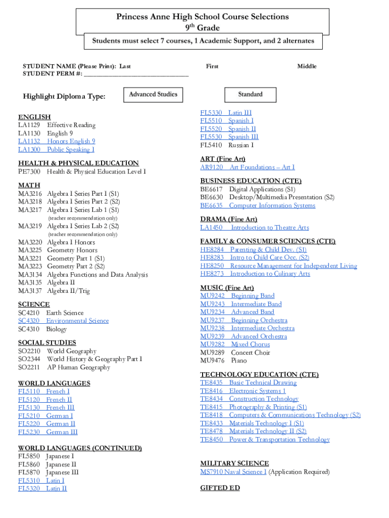 STUDENT NAME (Please Print): Last STUDENT PERM #: ___ Highlight Diploma Type:ENGLISH LA1129 Effective Reading LA1130 English 9 LA1132 Honors English 9 LA1300 Public Speaking I HEALTH & PHYSICAL EDUCATION