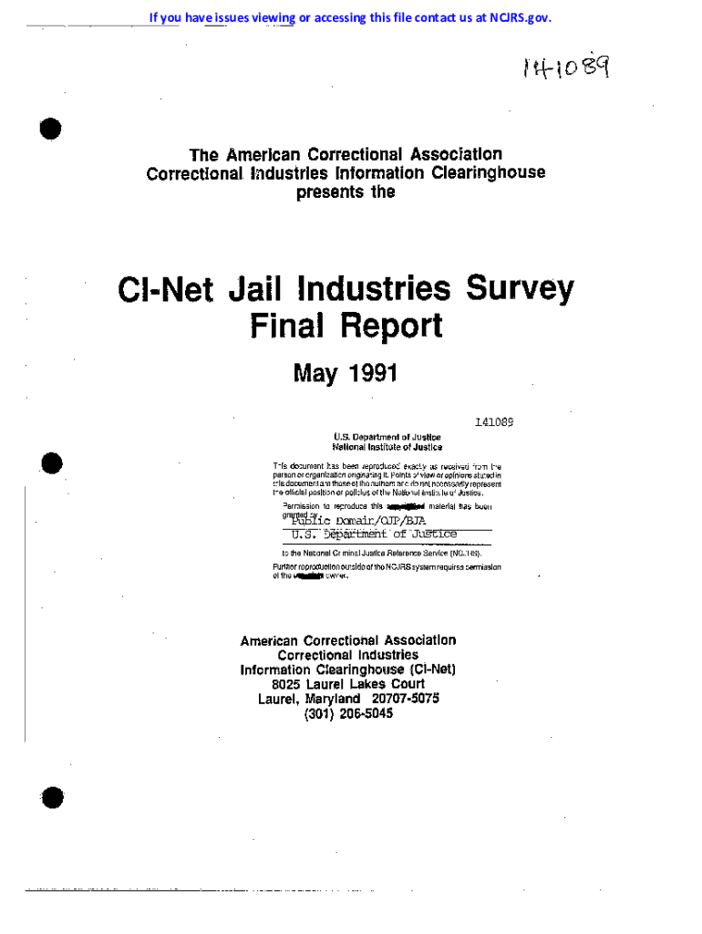 If you have issues viewing or accessing this file contact us at CARS.gov. The American Correctional Association Correctional Industries Information Clearinghouse presents precinct Jail Industries