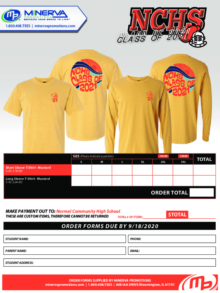 NHS CLASS OF 20211.800.408.TEES | minervapromotions. Combine (Please indicate qualities) SML XL+$3.00+$6.002XL3XLShort Sleeve Shirt Mustard SL $18.00 Long Sleeve Shirt Mustard SL $24.00ORDER TOTAL