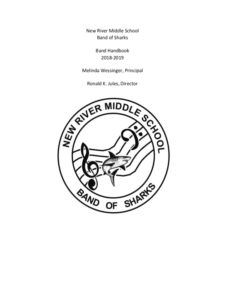 New River Middle School Band of Sharks Band Handbook 20182019 Melinda Messenger, Principal Ronald K. Jules, Director2Dear parents and students, Welcome to one of the most exciting programs at New