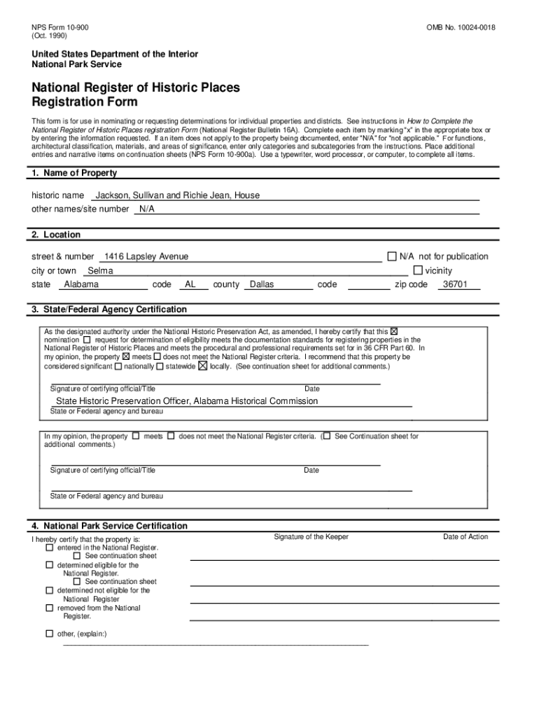 NPS Form 10900 (Oct. 1990)OMB No. 100240018United States Department of the Interior National Park ServiceNational Register of Historic Places Registration Form This form is for use in nominating or