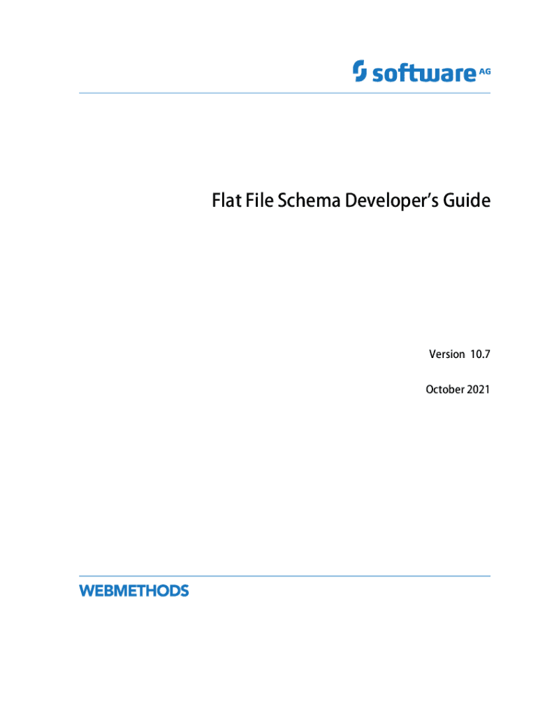 Flat File Schema Developers GuideVersion 10.7 October 2021This document applies to methods Integration Server 10.7 and to all subsequent releases. Specifications contained herein are subject to change