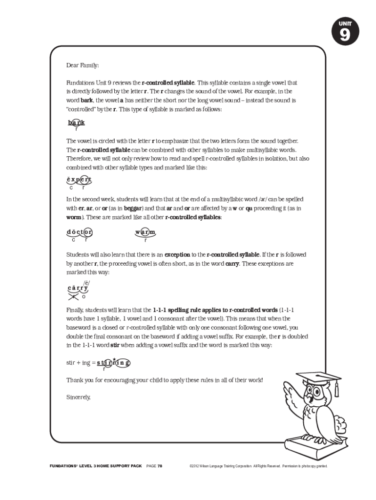 Get the free Fundations Unit 9 reviews the r-controlled syllable. This ...