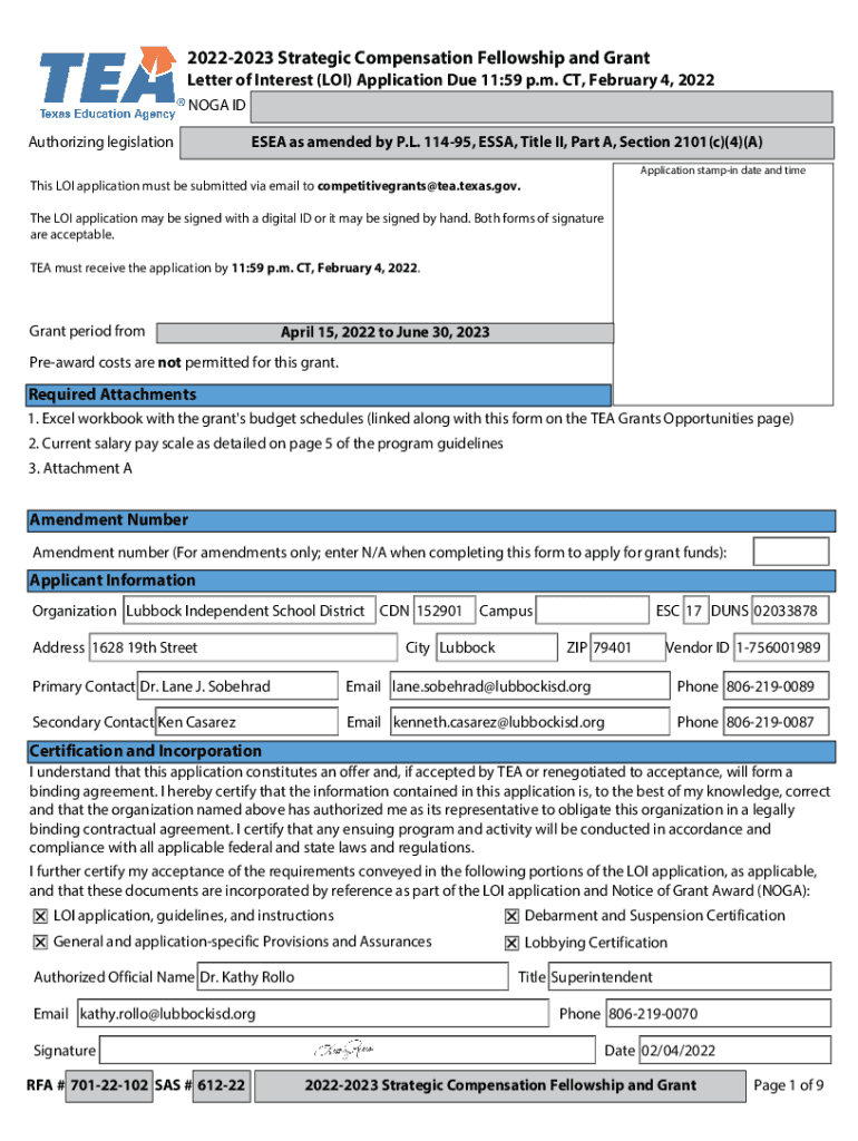 20222023 Strategic Compensation Fellowship and GrantLetter of Interest (LOI) Application Due 11:59 p.m. CT, February 4, 2023,