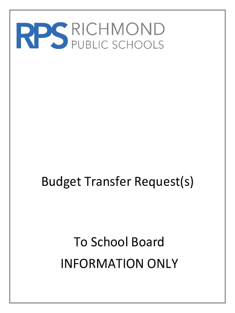 Budget Transfer Request(s)To School Board INFORMATION ONLYDocuSign Envelope ID: EF3CB88B090445A48ACBCCC4EA95BBD6RICHMOND PUBLIC SCHOOLS Department of Budget and Planning Phone: 7805477 Fax: 7805401BUDGET