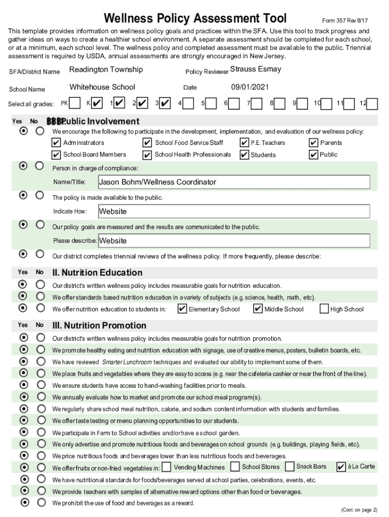 Get the free Wellness Policy Assessment Tool Form 357 Rev 8/17 - North ...