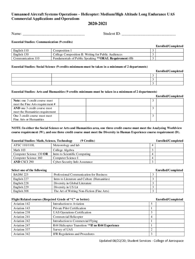 Unmanned Aircraft Systems Operations Helicopter: Medium/High Altitude Long Endurance UAS Commercial Applications and Operations20202021 Name: ___Student ID: ___Essential Studies: Communication (9