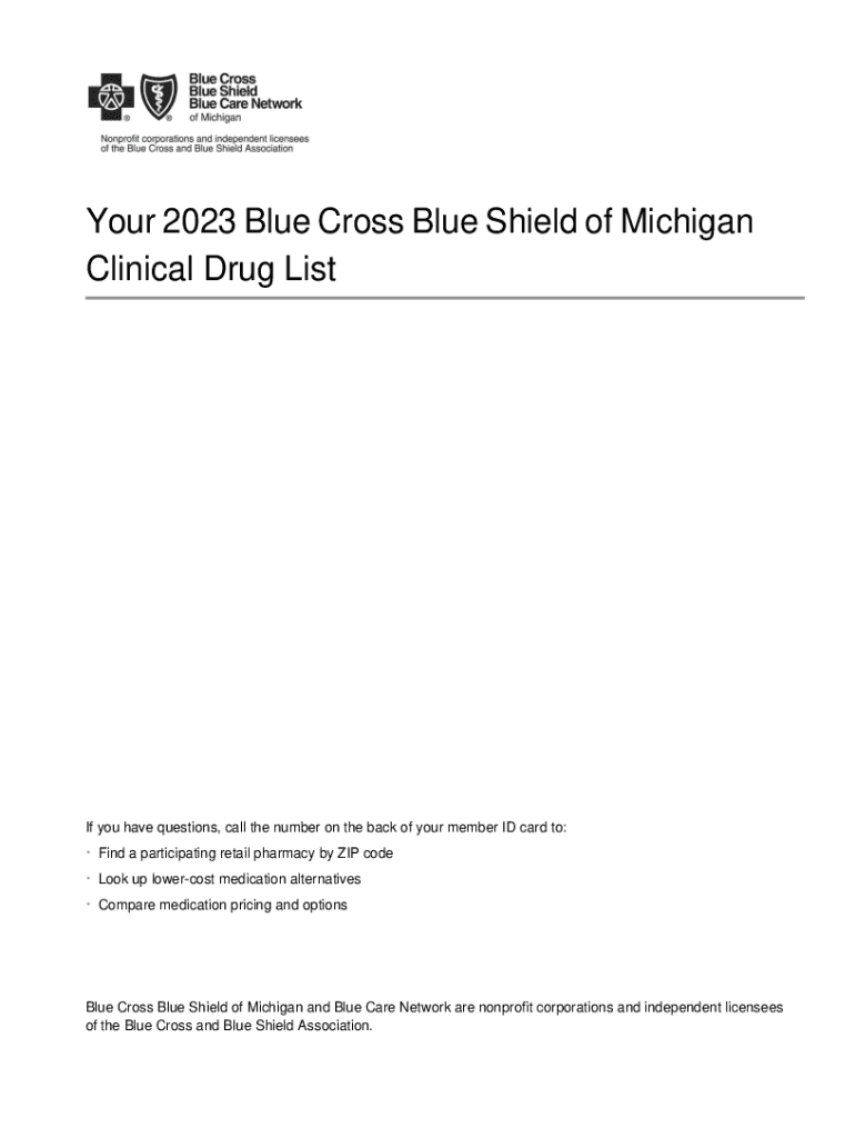 Your 2023 Blue Cross Blue Shield of Michigan Clinical Drug List you have questions, call the number on the back of your member ID card to: Find a participating retail pharmacy by ZIP code Look up
