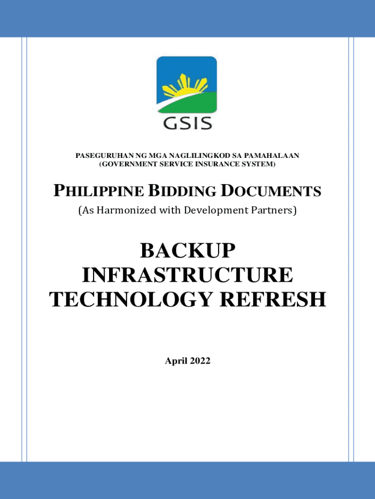 PASEGURUHAN NG MGA NAGLILINGKOD SA PAMAHALAAN (GOVERNMENT SERVICE INSURANCE SYSTEM)PHILIPPINE BIDDING DOCUMENTS (As Harmonized with Development Partners)BACKUP INFRASTRUCTURE TECHNOLOGY REFRESH April