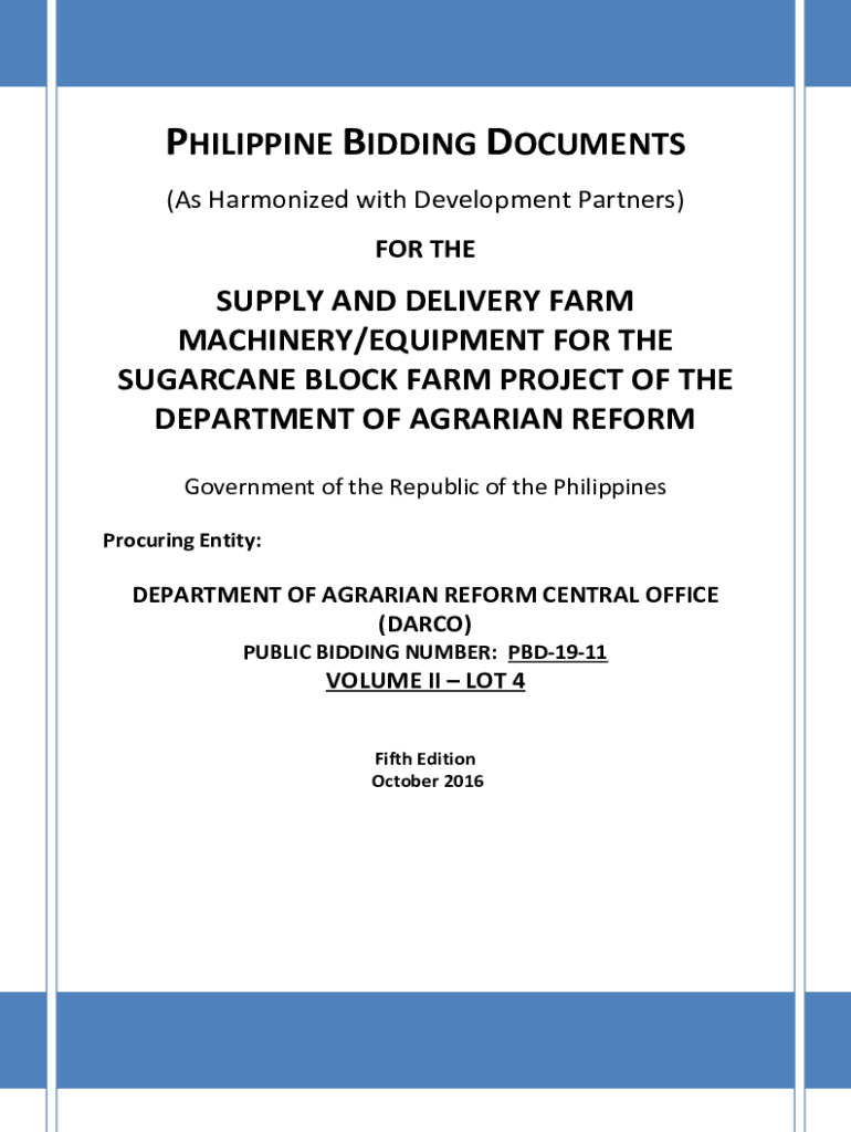 PHILIPPINE BIDDING DOCUMENTS (As Harmonized with Development Partners) FOR RESUPPLY AND DELIVERY FARM MACHINERY/EQUIPMENT FOR THE SUGARCANE BLOCK FARM PROJECT OF THE DEPARTMENT OF AGRARIAN REFORM