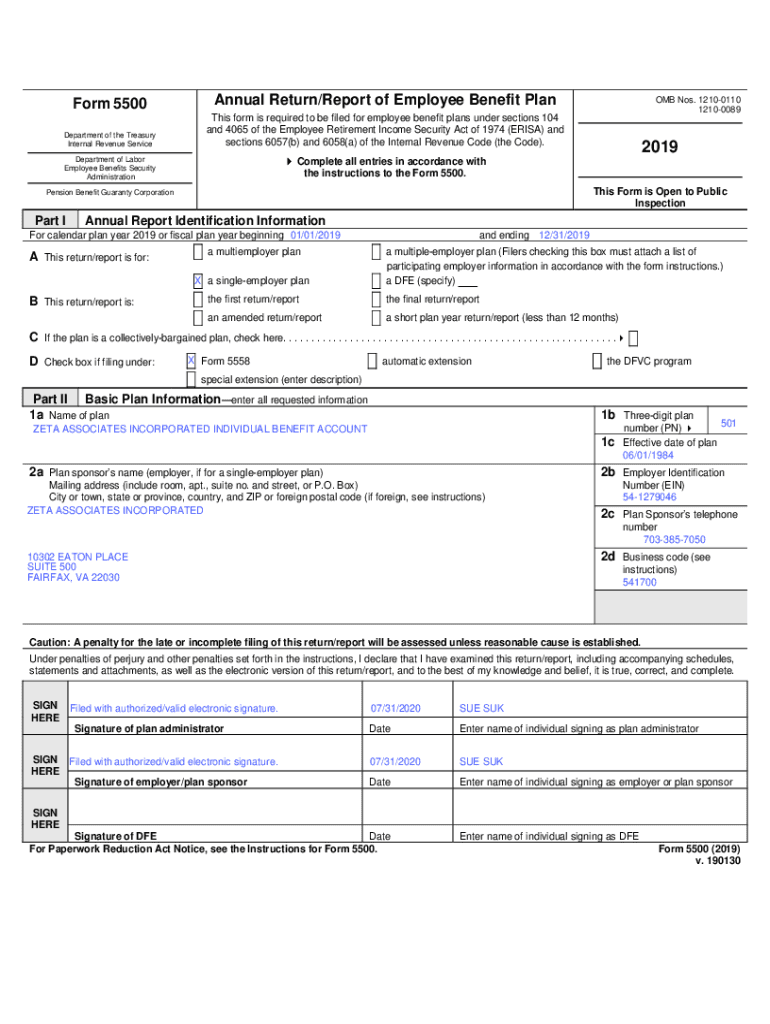 Form 5500Annual Return/Report of Employee Benefit PlanDepartment of the Treasury Internal Revenue Services form is required to be filed for employee benefit plans under sections 104 and 4065 of the