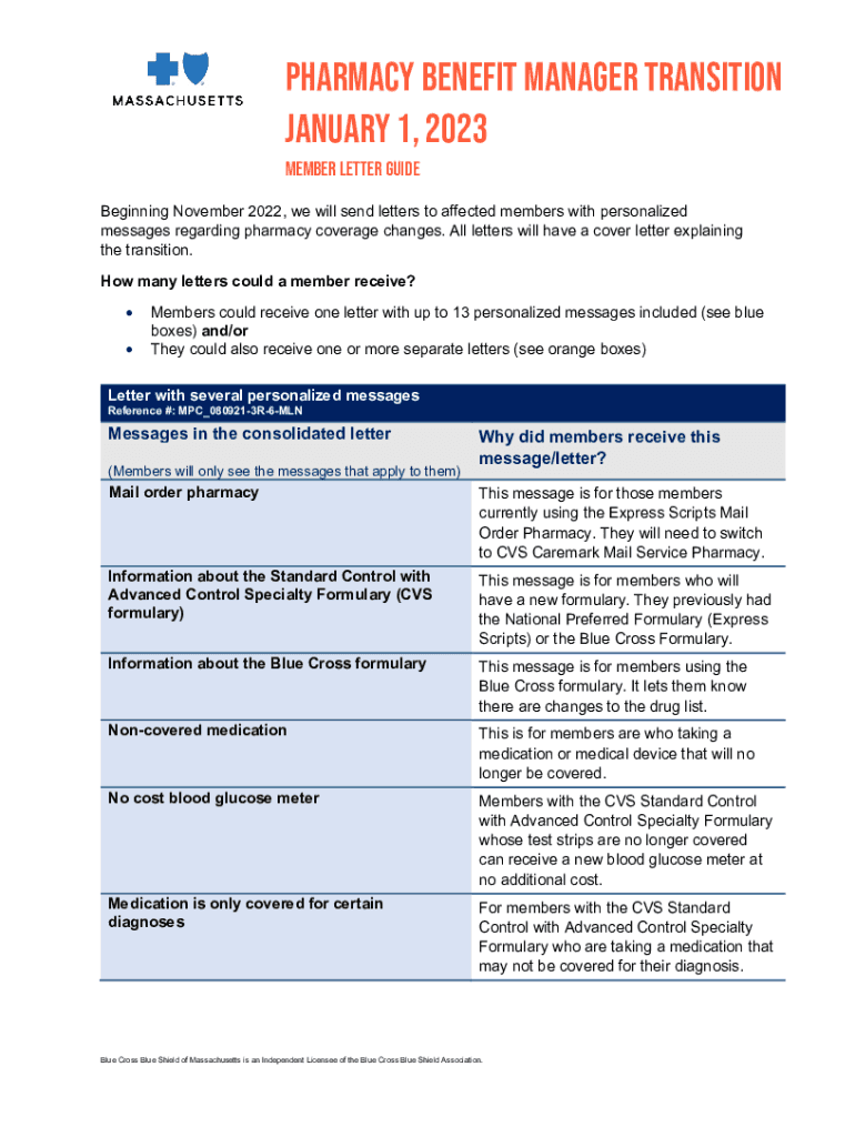 Pharmacy Benefit Manager Transition January 1, 2023, Member letter Guide Beginning November 2022, we will send letters to affected members with personalized messages regarding pharmacy coverage changes.
