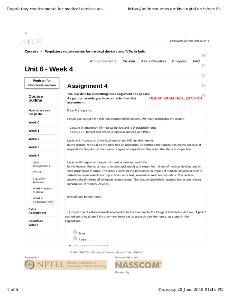 Regulatory requirements for medical devices an...https://onlinecoursesarchive.nptel.ac.in/noc19... X reviewer4@nptel.iitm.ac.in Courses Regulatory requirements for medical devices and DVDs in IndiaAnnouncementsCourseAsk