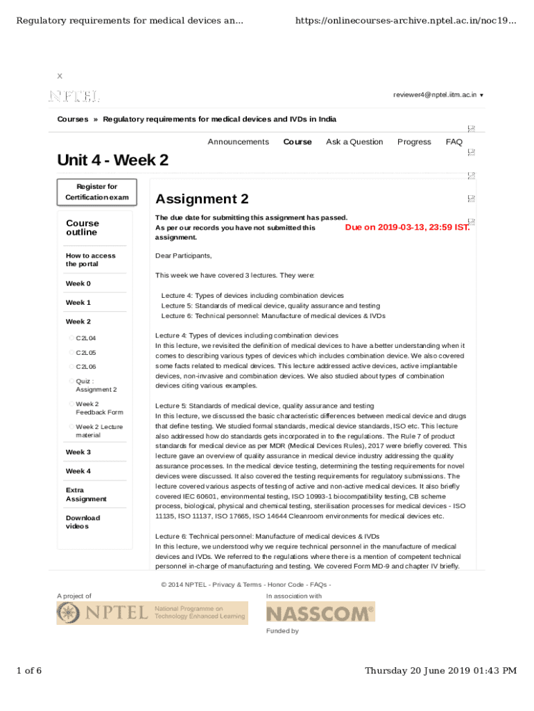 Get the free NOC:Regulatory requirements for medical devices ... - Nptel