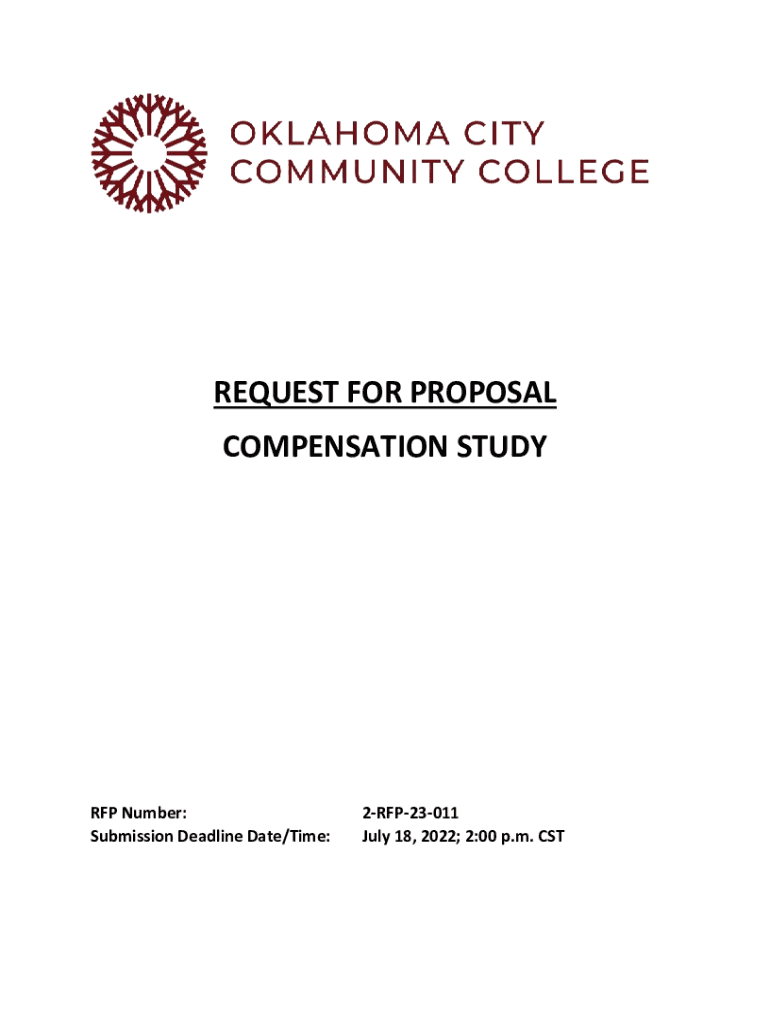 REQUEST FOR PROPOSAL COMPENSATION STUDY RFP Number: Submission Deadline Date/Time:2RFP23011 July 18, 2023; 2:00 p.m. COMPENSATION STUDY FOR OKLAHOMA CITY COMMUNITY COLLEGE (CCC) CONTRACTORS: Proposals