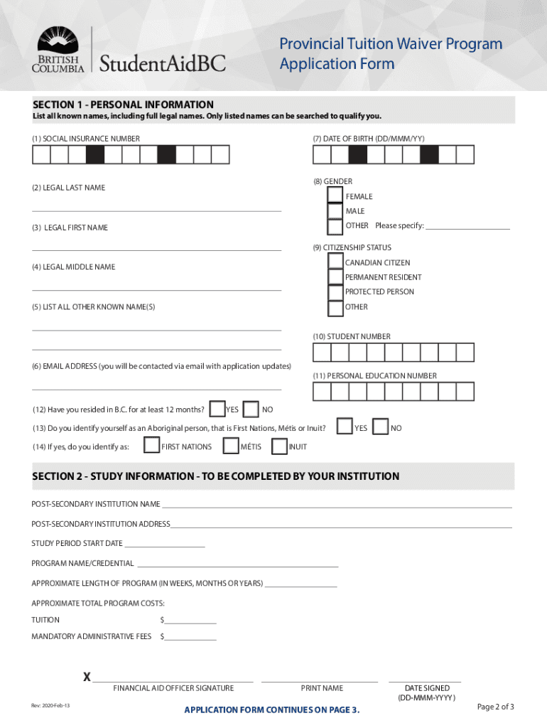 Provincial Tuition Waiver Program Application Form WHAT IS THE PROVINCIAL TUITION WAIVER PROGRAM? The program waives tuition and mandatory fees for full time and part-time B.C. postsecondary students