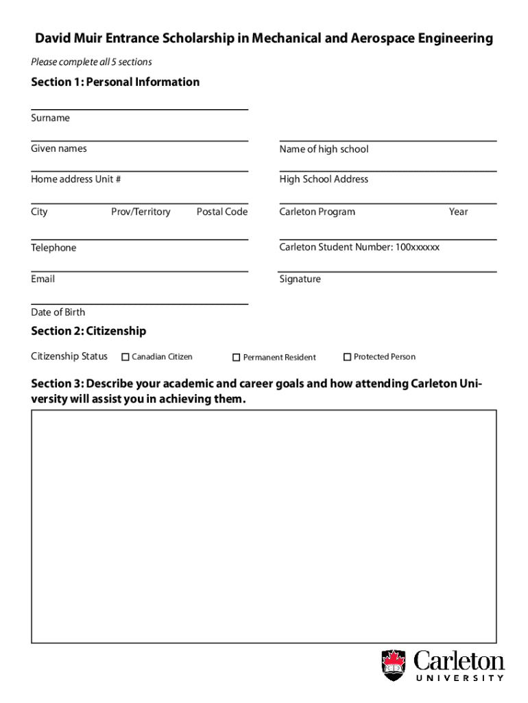 Get the free David Muir Entrance Scholarship in Mechanical and Aerospace ...