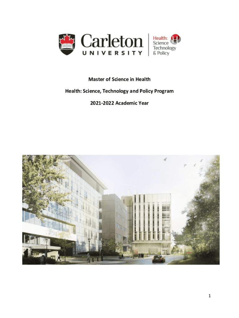 Master of Science in Health, Health: Science, Technology and Policy Program 20212022 Academic Year1Health: Science, Technology, and Policy Program Carleton University Health Sciences Building Ottawa,