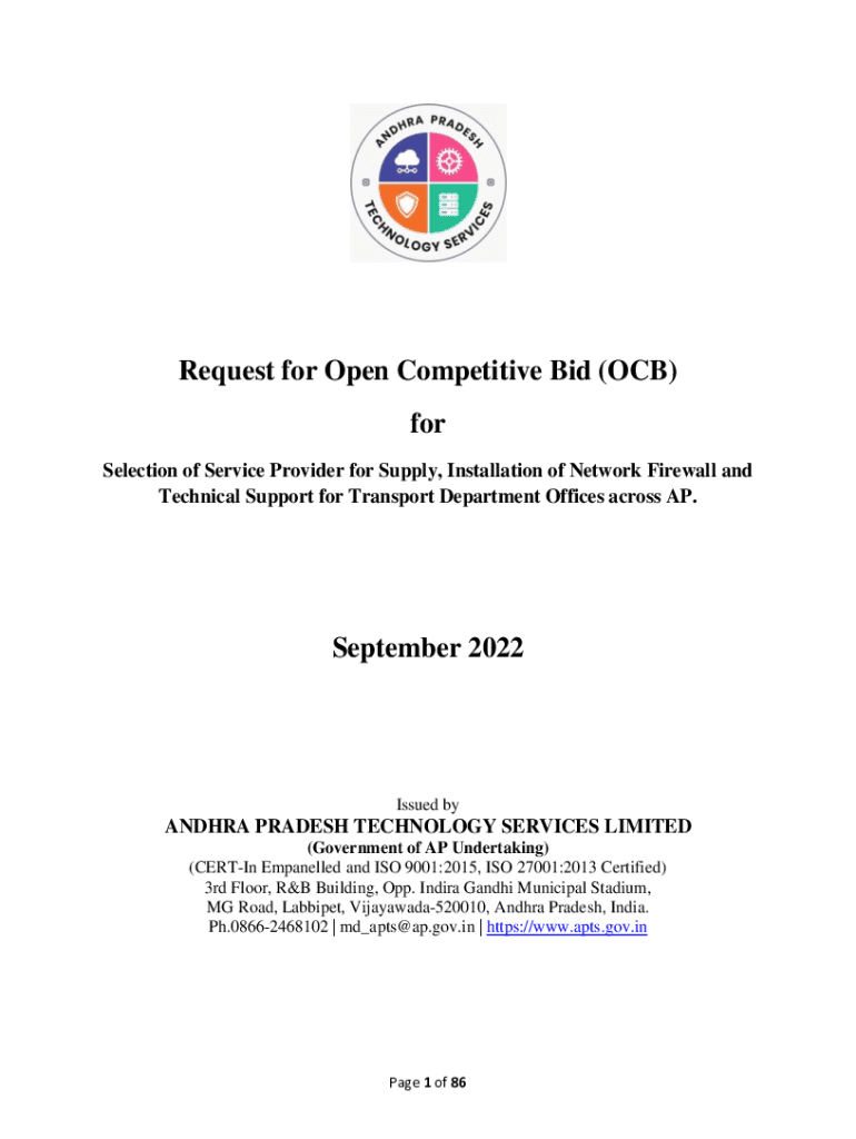 Request for Open Competitive Bid (OCB) for Selection of Service Provider for Supply, Installation of Network Firewall and Technical Support for Transport Department Offices across AP. September 2022Issued