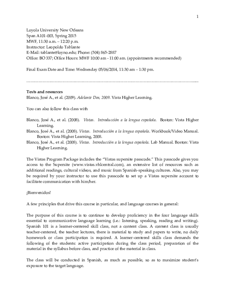 Span A101003, Spring 2015