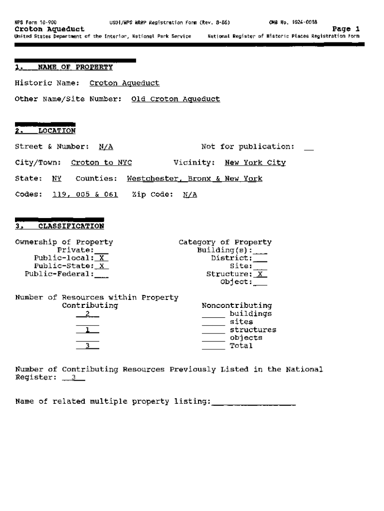 NPS Form 10900USDI/NPS CNRHP Registration Form (Rev. 886)0 MB No. 10240018Croton Aqueduct Page 1United States Department of the Interior, National Park Service1.NAME OF PROPERTYHistoric Name:Proton