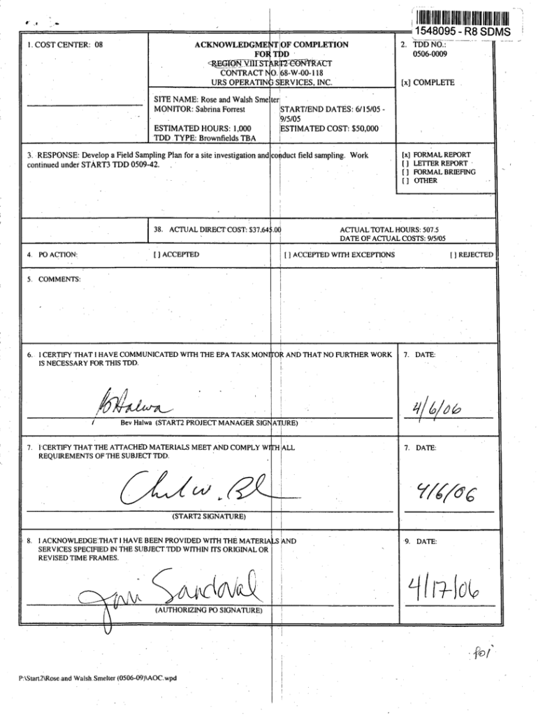 URS OPERATING SERVICES, INC.2. TDD NO.: