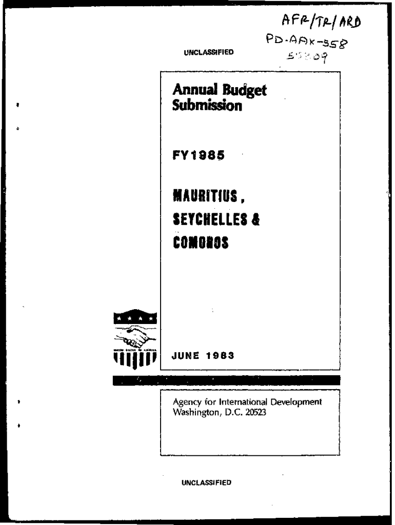 UNCLASSIFIEDAnnual Budget Submission FY1985MAURITIUS, SEYCHELLES 4 CONOIDSWKTM lung JEJUNE 1983Agency for International Development Washington, D.C. 20523UNCLASSIFIEDTABLE OF CONTENTSAnnual Budget