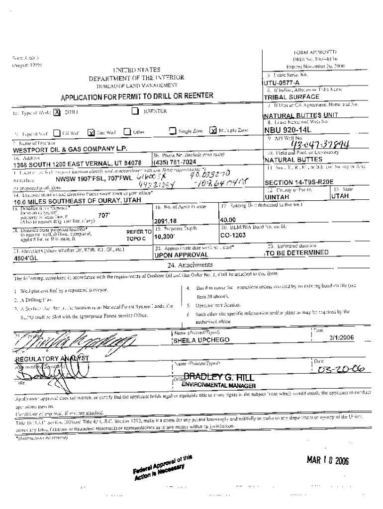 DEPARTMENT OF THE INTERIOR5. Lease Serial No.UTU0577ABUREAU OF LAND MANAGEMENTIfFOR PERMIT TO DRILLER