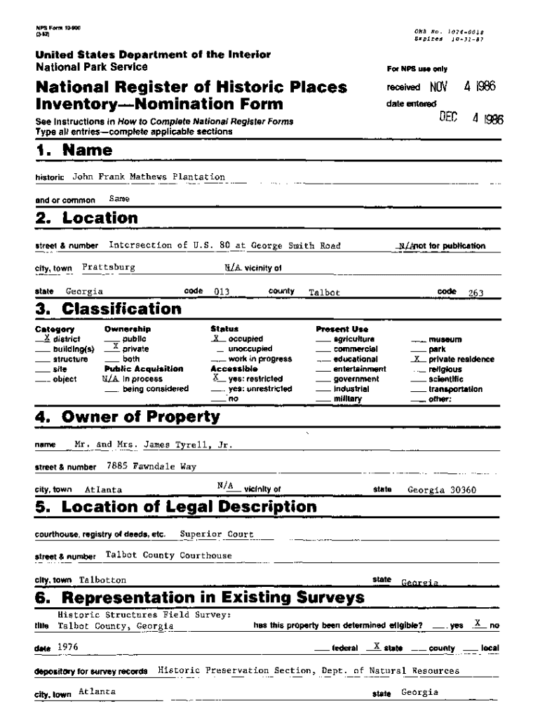 NFS Form 10900OHB No. 10240018 Expires 103187United States Department off the International Park ServiceNow NFS UM onlyNational Register of Historic Places InventoryNomination FormreceivedNOV4 1986date