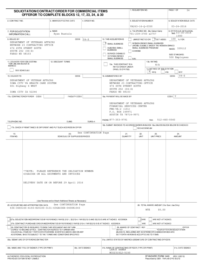 SOLICITATION/CONTRACT/ORDER FOR COMMERCIAL ITEMS OFFER OR TO COMPLETE BLOCKS 12, 17, 23, 24, & 30 2. CONTRACT NO.3. AWARD/EFFECTIVE DATE4. ORDER NO.1. REQUISITION NO.PAGE 1 OF5. SOLICITATION NUMBER6.