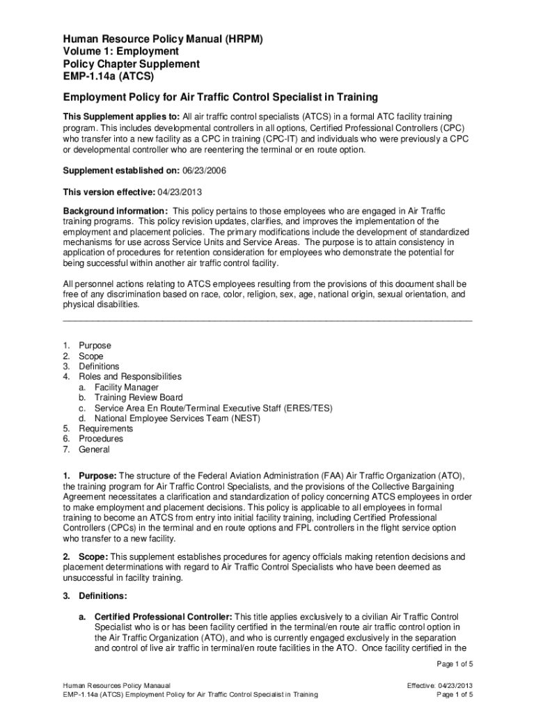 Get the free EMP-1.14a (ATCS) Employment Policy for Air Traffic Control ...