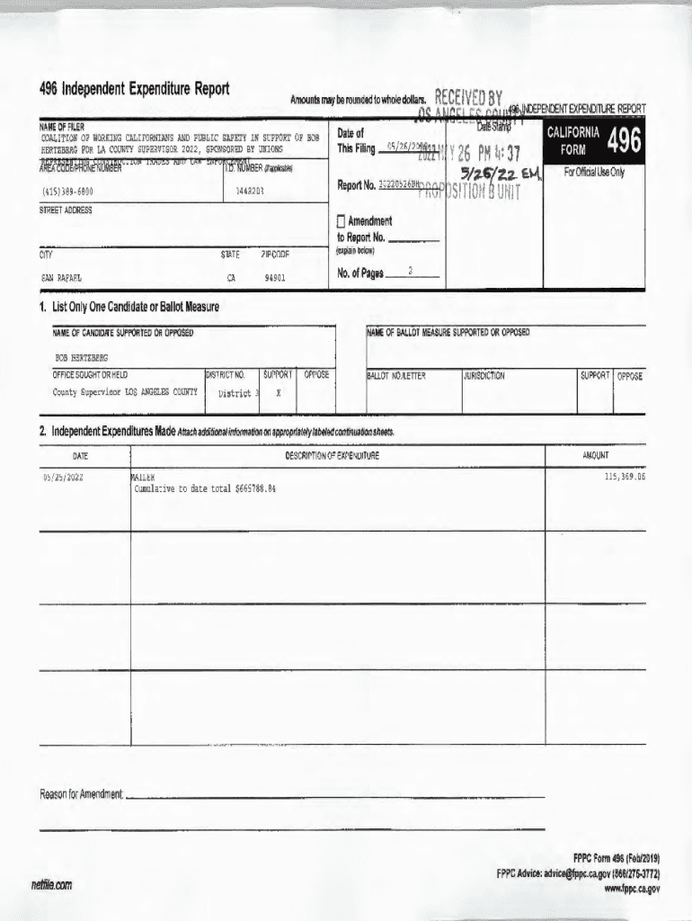 496 Independent Expenditure ReportAmounts may be rounded to whole dollars. DEPENDENT EXPENDITURE REPORT FILER NAME C COALITION OF WORKING CALIFORNIANS l.ND PUBLIC SAFETY IN SUPPORT OF BOB HERBERT