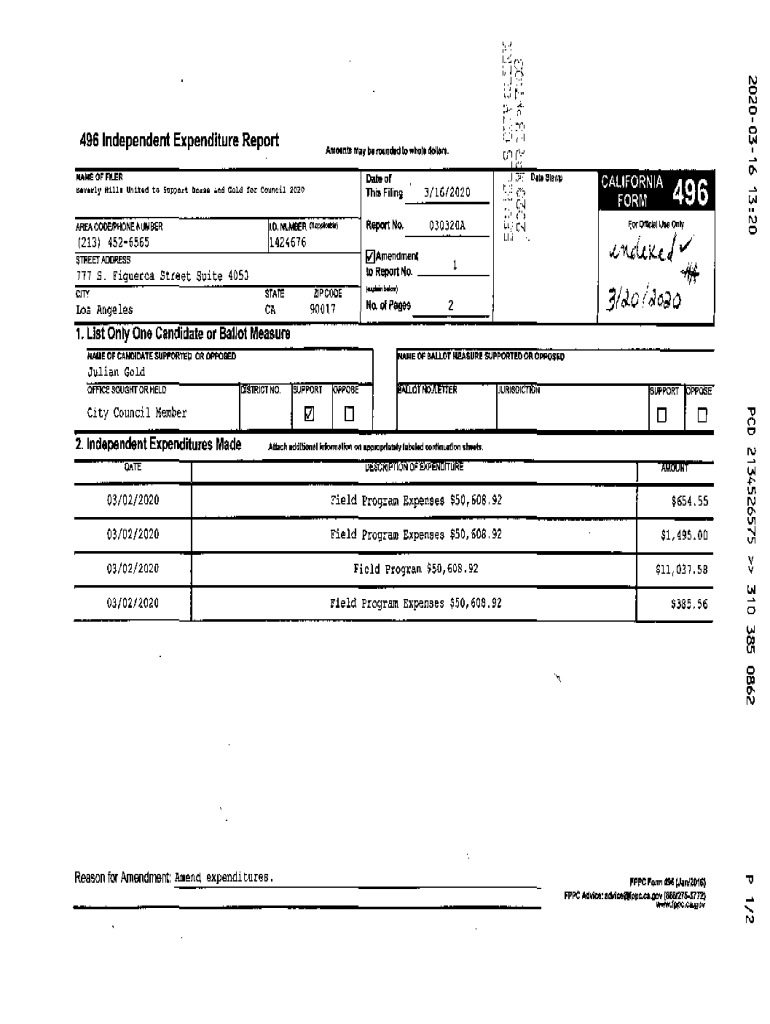 \' \'b CR’ll J (\'r. . . Of\”\' 0 \”\' 0:. ).;...., I.:, c t. , \”\”, \”\'496 Independent Expenditure ReportAmounts MAV be rounded to whole DOL\', Disunited to Support Boss and Gold !or